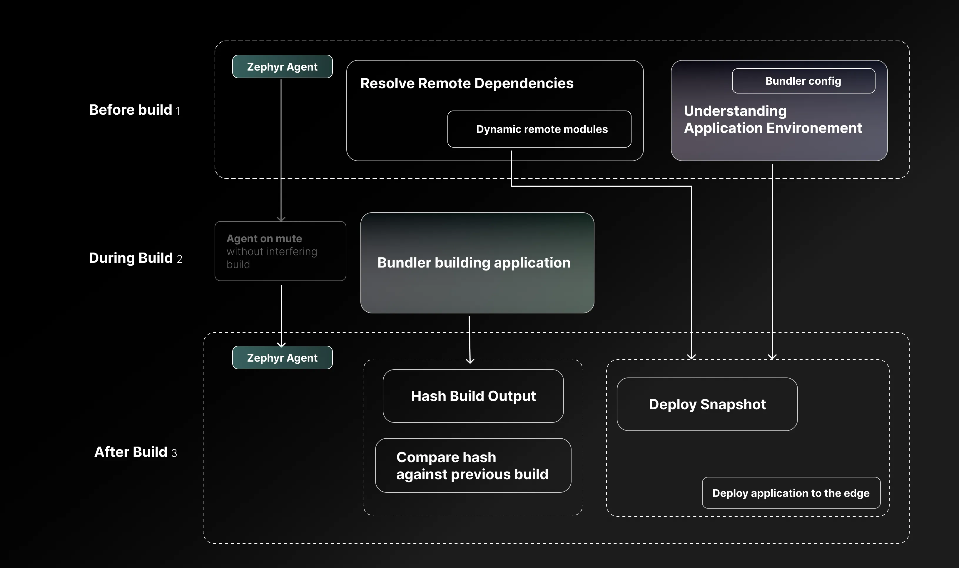 By intercepting the build process at the bundler level, Zephyr can analyze, optimize, and deploy applications without modifying the build output or requiring changes to existing workflows.